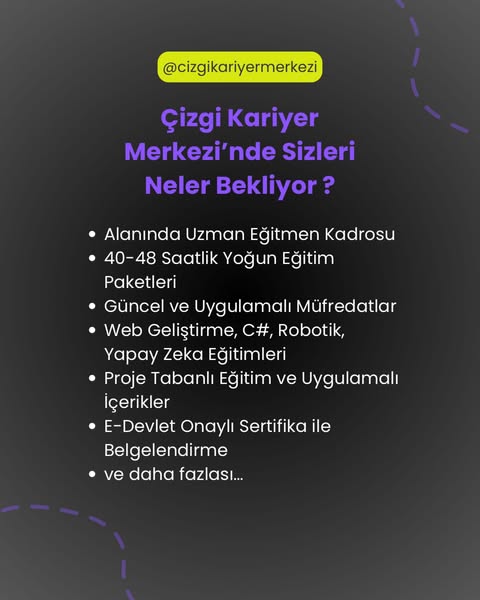 Çizgi Kariyer Merkezi'nde eğitmenlerimizin yıllarca deneyimleri ve bilgileriyle sizlere en iyi eğitim sunuyoruz.